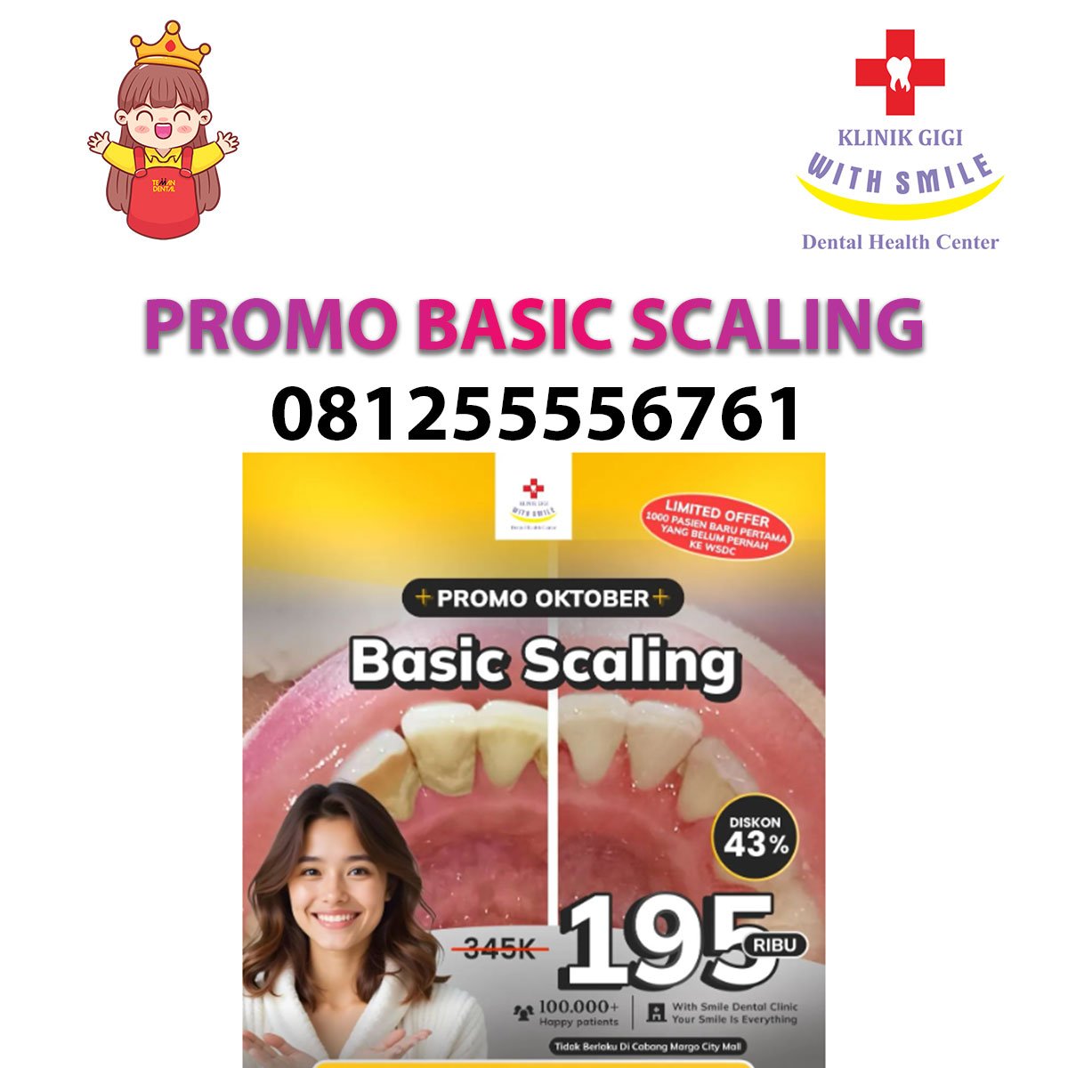 Dengan harga terjangkau, dokter profesional, dan fasilitas nyaman, Promo Basic Scaling dari With Smile Dental Clinic Jakarta adalah solusi tepat untuk menjaga kesehatan mulut tanpa bikin kantong kering.